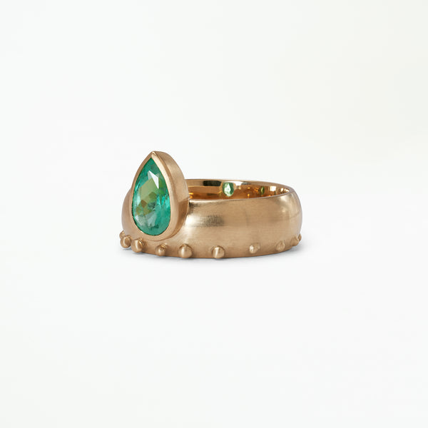 One of a Kind Emerald and Pear Cut Champagne Diamond Mosaic Ring No. 9