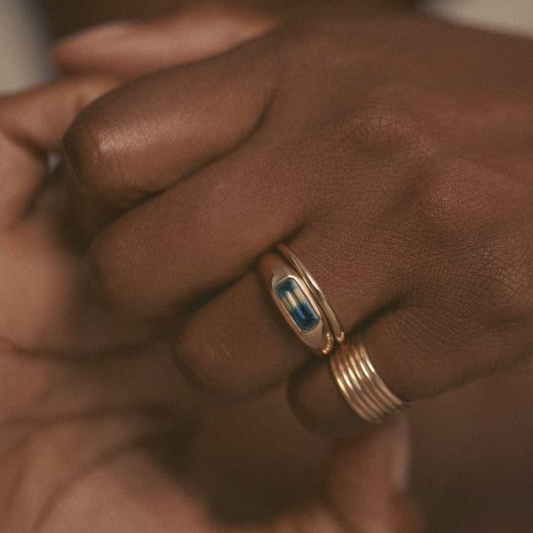 One of a Kind Emerald Cut Sapphire Dyad Signet Ring No. 19